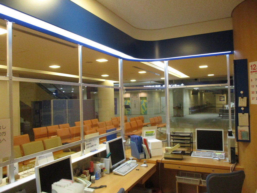 飛沫感染対策のビニールシートが設置されていたところに、新しくアクリル板を設置しました。