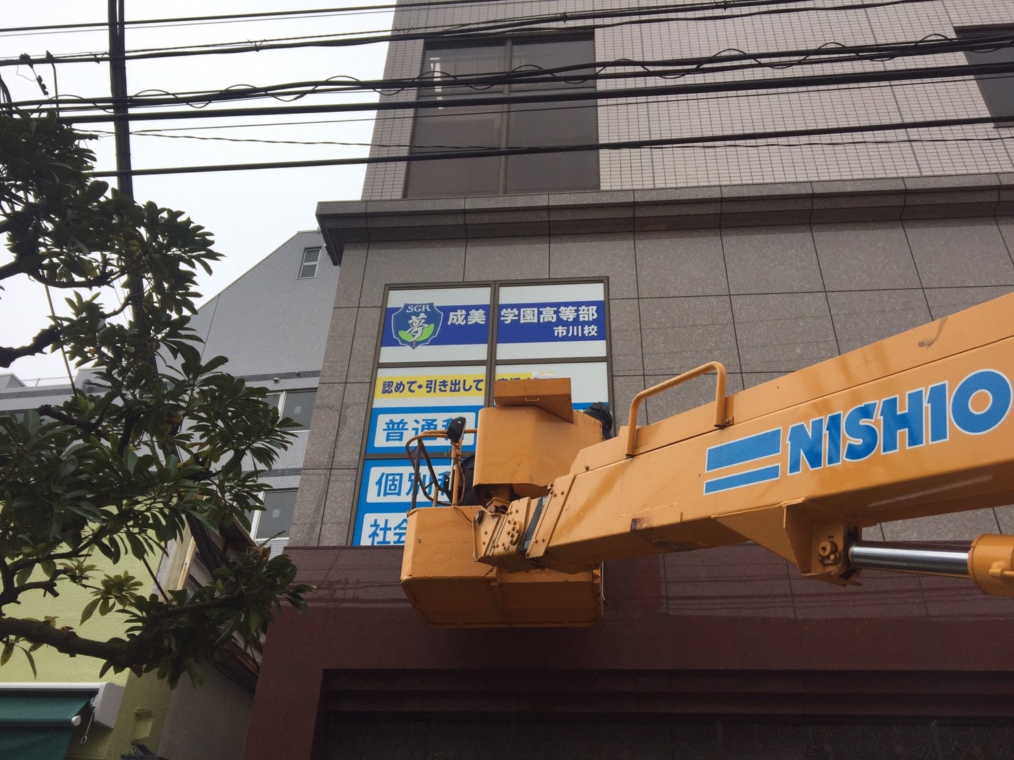 遮光防炎ターポリン製の懸垂幕を設置しました。
