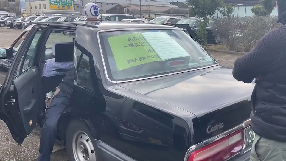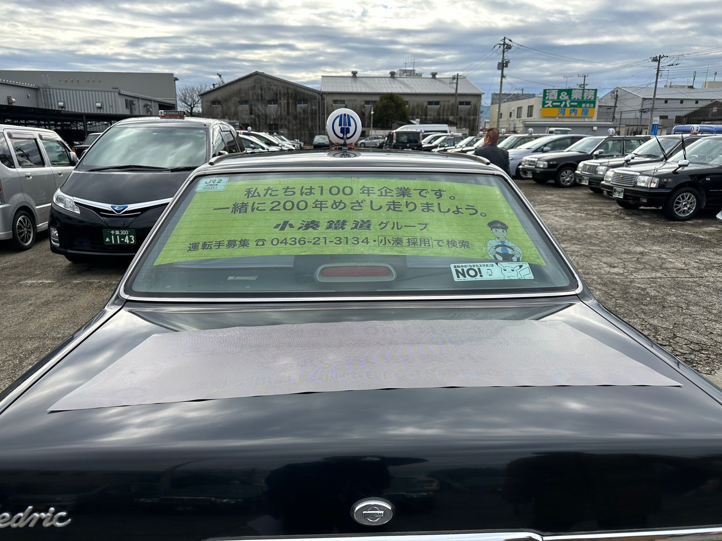 タクシーのリアウィンドウに、3M社製ワンウェイビジョンフィルムを貼りました。このフィルムには小孔があけられていて、外側からはデザインが見え、内側からは小孔を通して外の様子を見ることができる特徴あるフィルムとなっています。