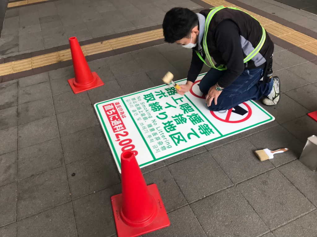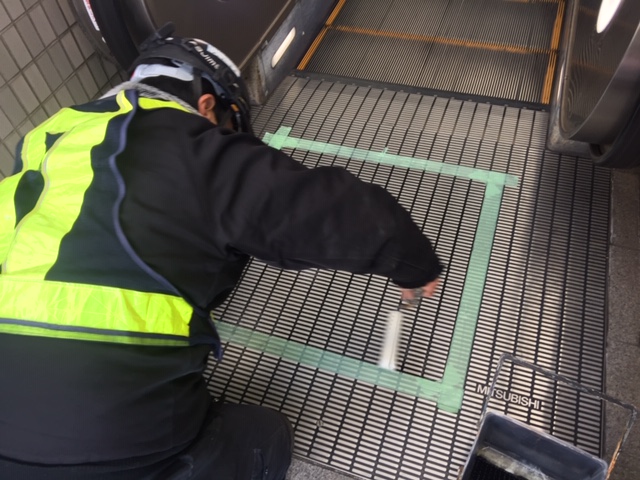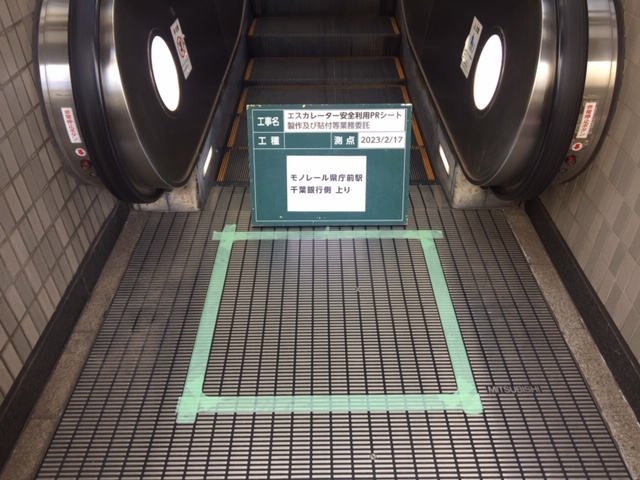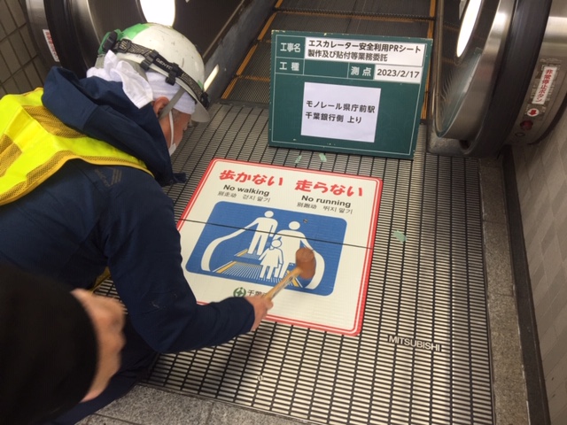 エスカレーター安全利用PRシートの貼り付けを行いました。
