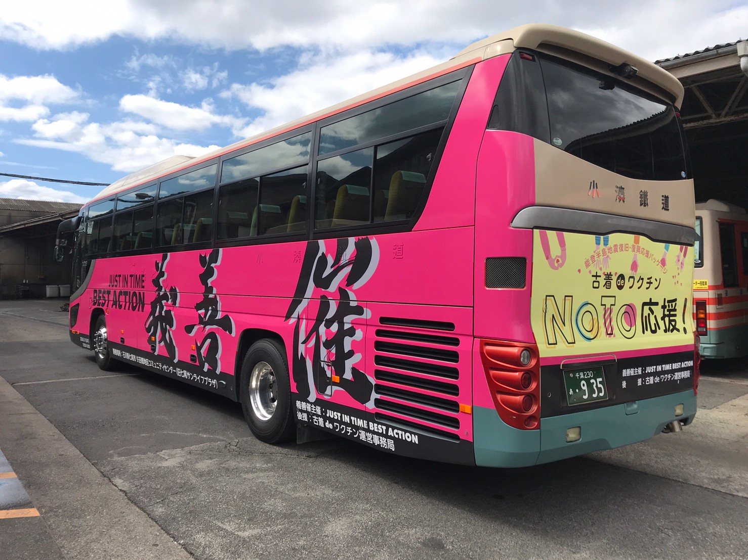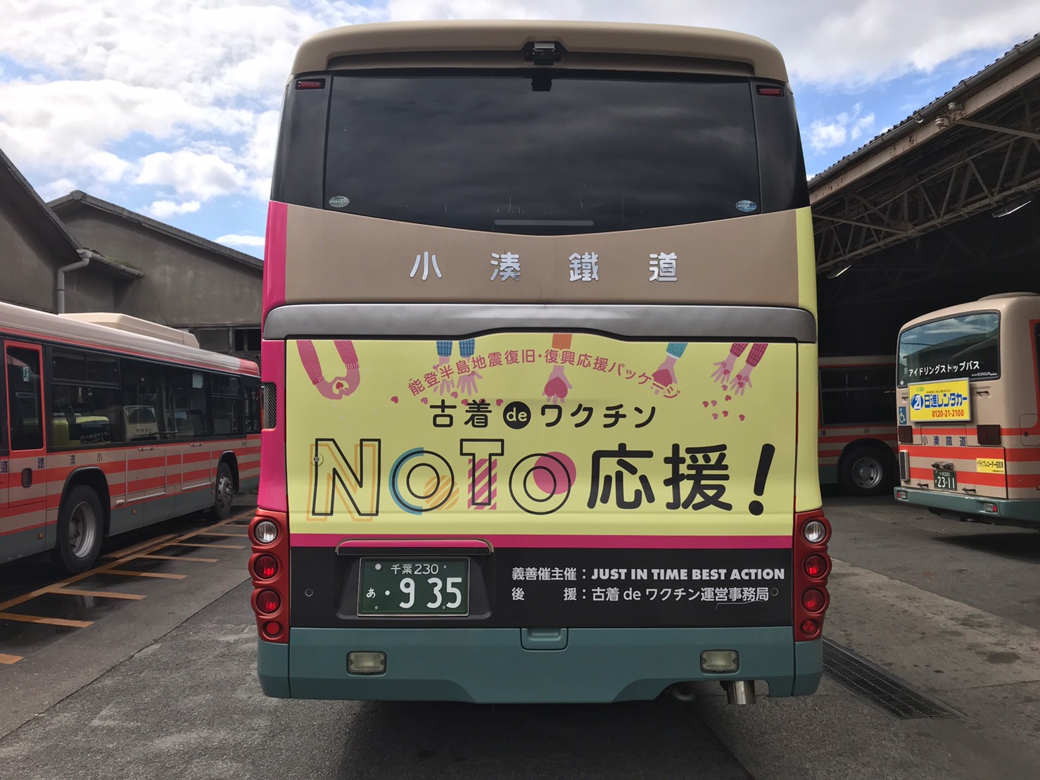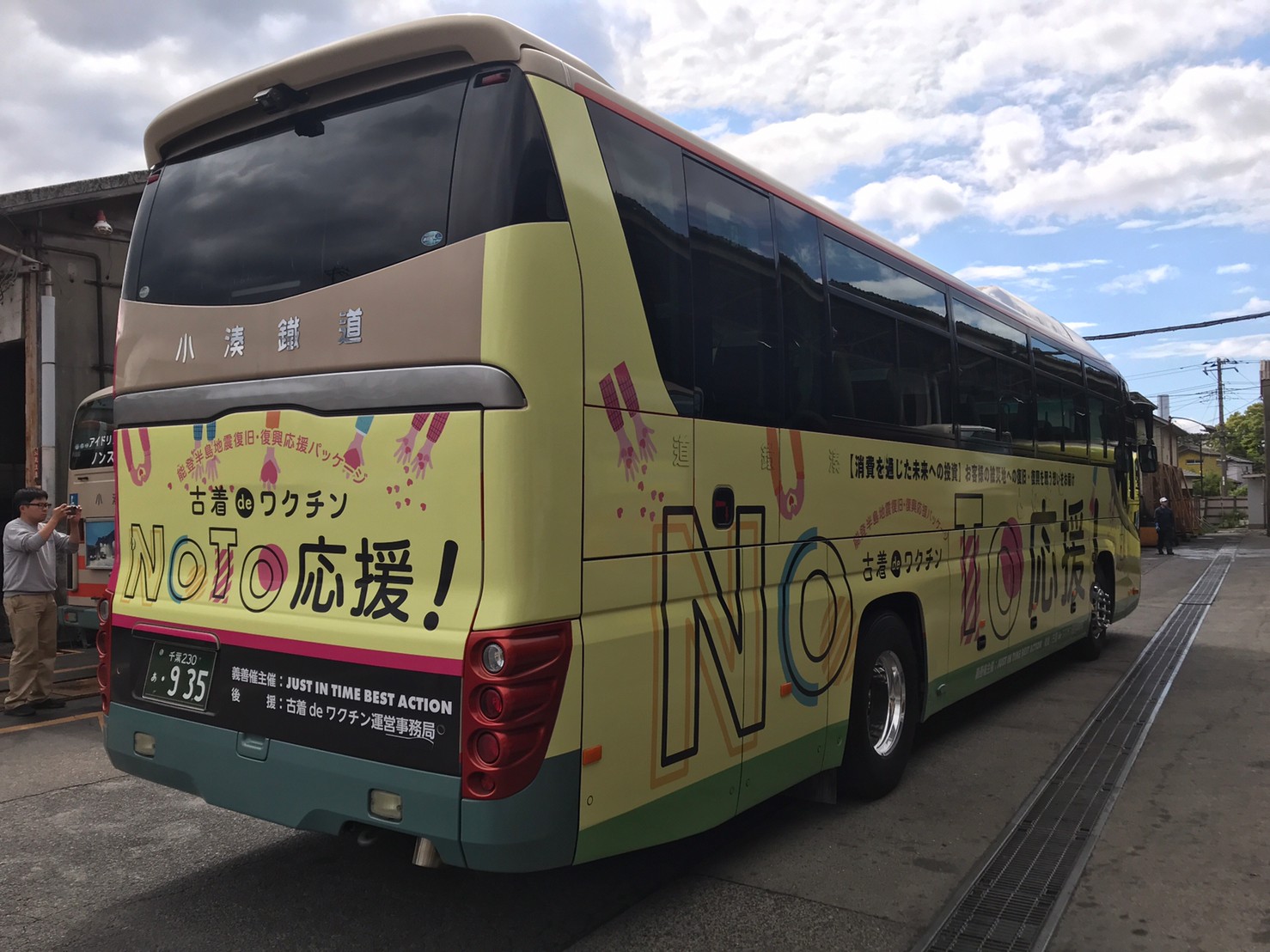 「古着deワクチン能登半島地震復旧・復興応援パッケージ」をPRするバスラッピングを施工しました。