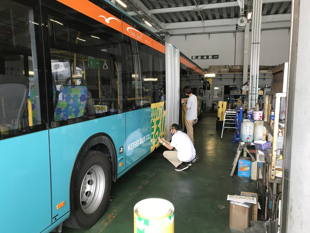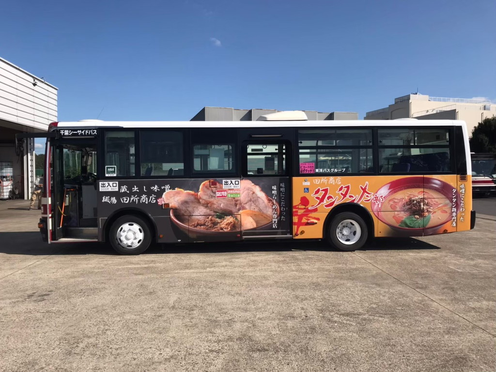 千葉都市モノレールと京成バスへのラッピング(データ作成~施工)を行いました。