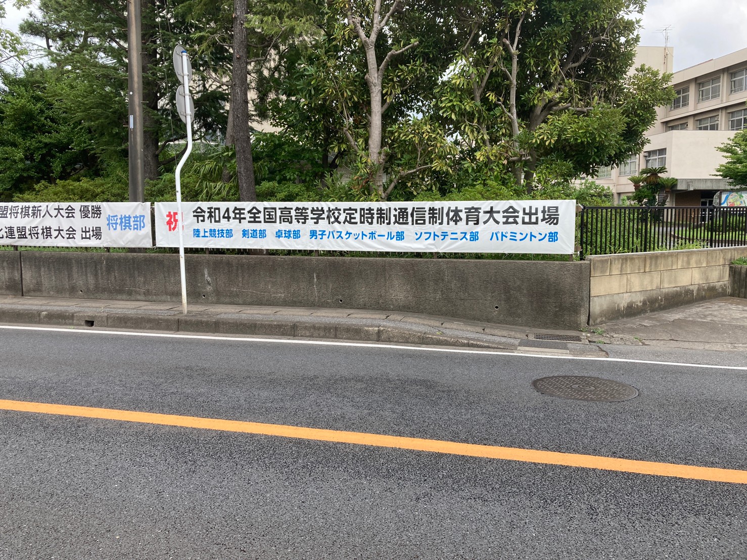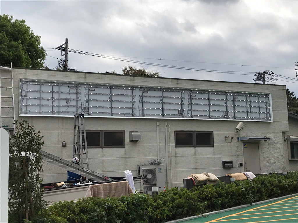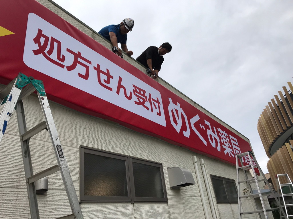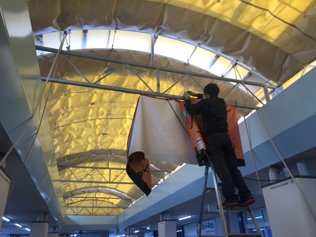 遮光防炎ターポリン製の懸垂幕を設置しました。