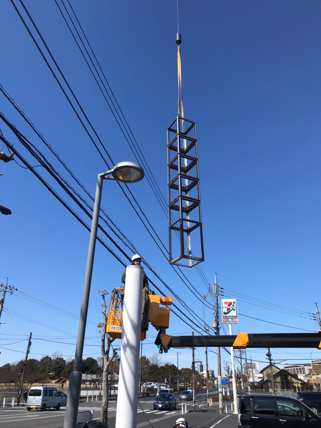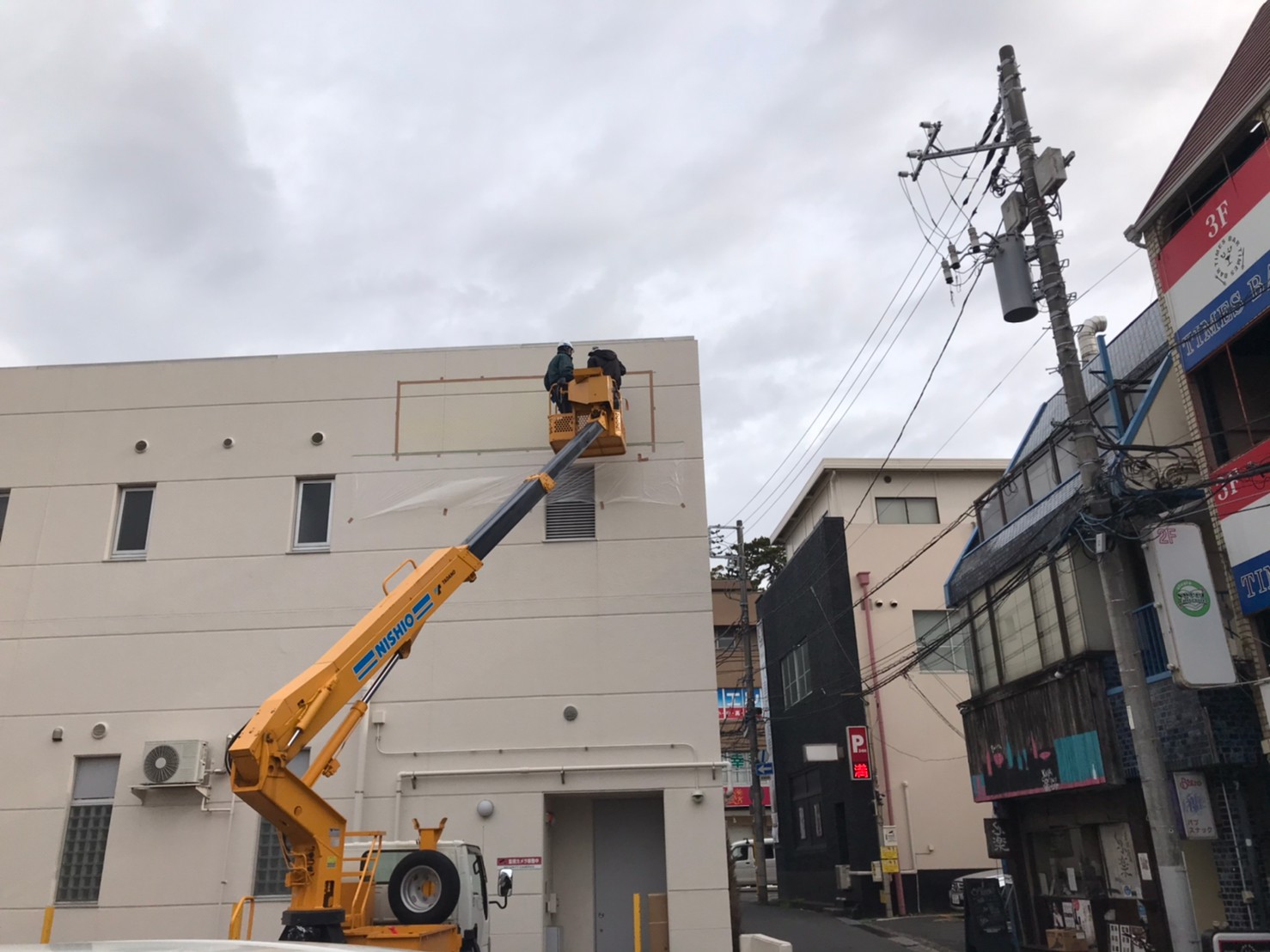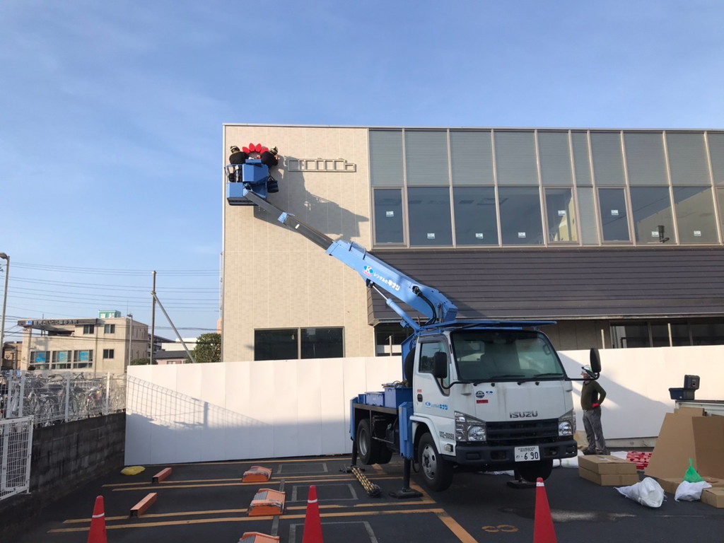 遮光防炎ターポリン製の懸垂幕を設置しました。