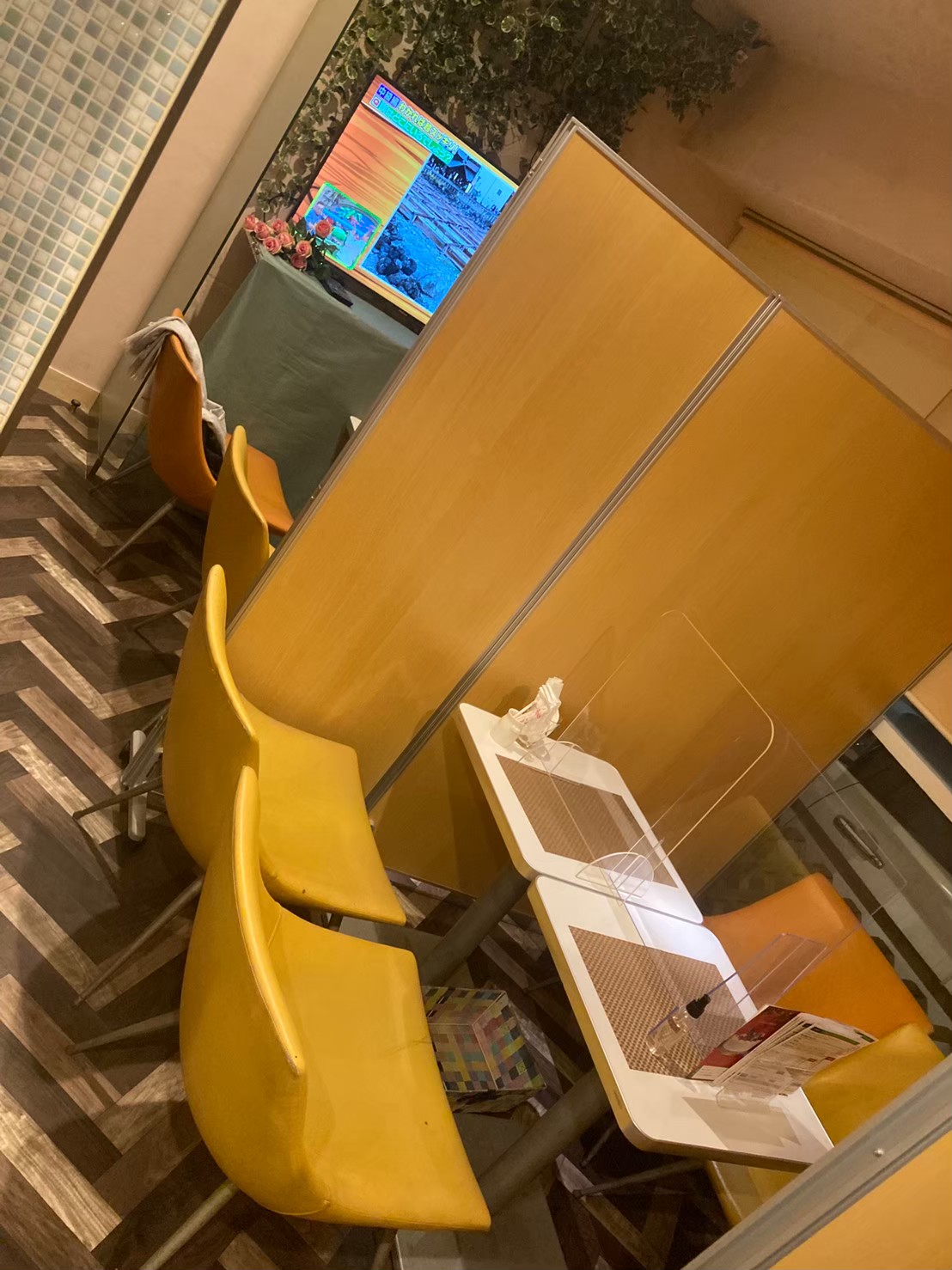飛沫感染対策のビニールシートが設置されていたところに、新しくアクリル板を設置しました。