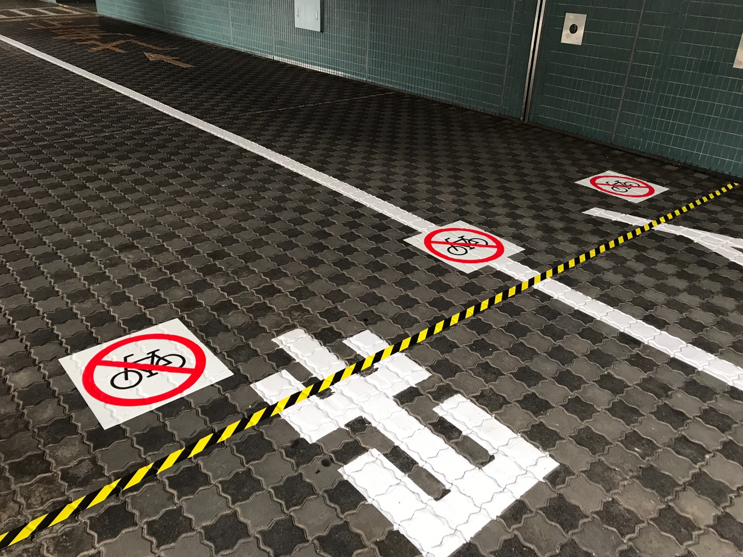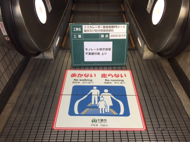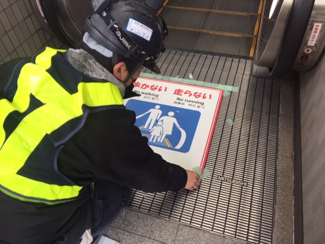 エスカレーター安全利用PRシートの貼り付けを行いました。