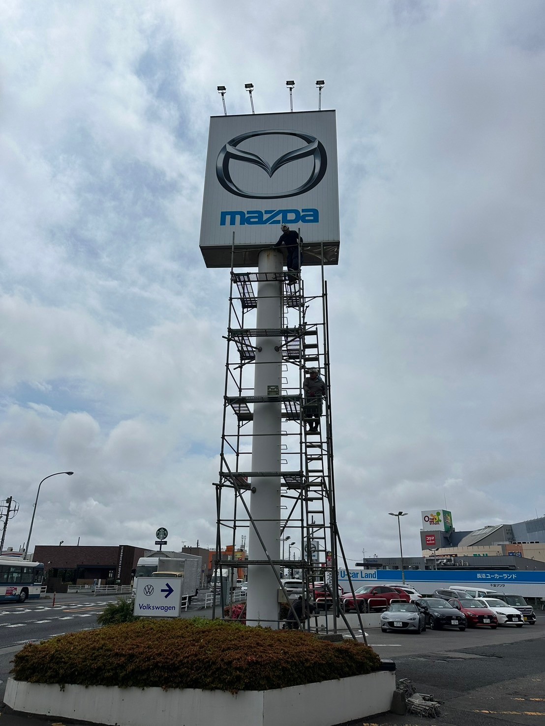 千葉マツダ長沼店 ポール看板の塗装をしました。