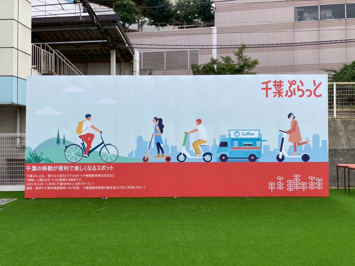 千葉駅を起点とするモビリティハブ「千葉ぷらっと」の実証実験を案内する仮囲いサインを設置しました。