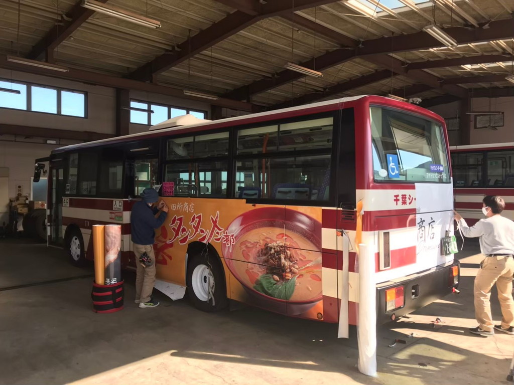 「古着deワクチン能登半島地震復旧・復興応援パッケージ」をPRするバスラッピングを施工しました。